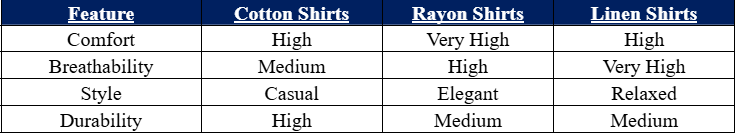 Comparison Table of Hawaiian Shirt Features